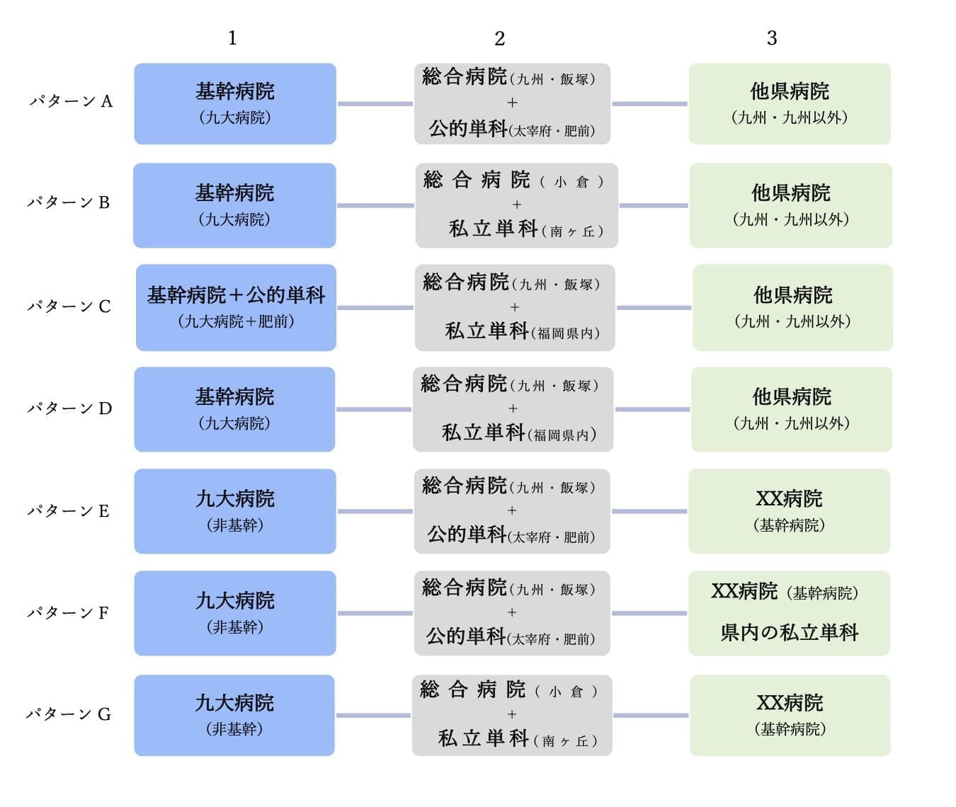 九大病院、小倉医療センター、九州医療センター、飯塚病院など |