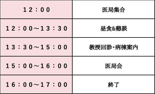 医局見学のスケジュール(木曜日見学の場合)