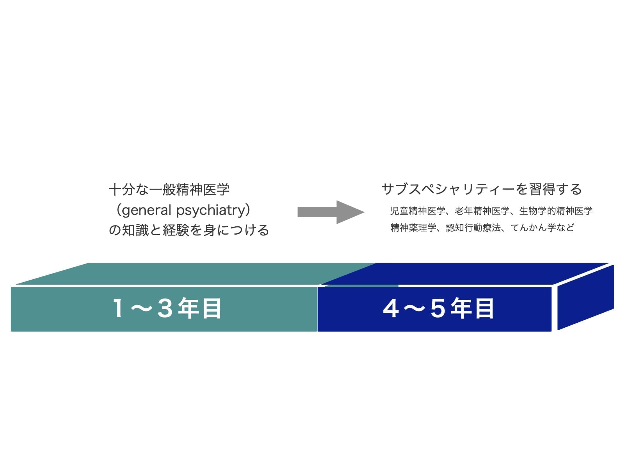 5年間の精神科後期研修で、下記に列記した精神保健指定医や日本精神神経学会専門医をはじめとする各種資格の取得を目標とする。