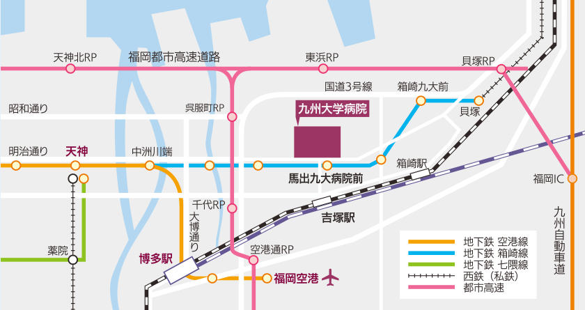 ・地下鉄箱崎線「馬出九大病院前駅」下車 徒歩5分